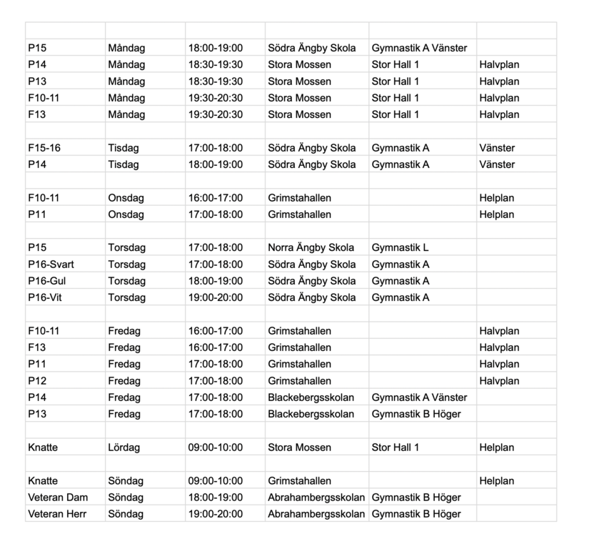 Träningstider Innebandy V.34 Publicerad 2024-08-05 14:14 Vi ser även över möjligheten att boka fler tider hos KFUM. Andreas Berggren