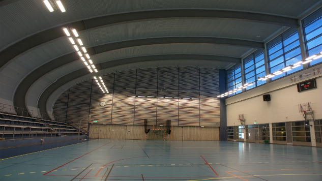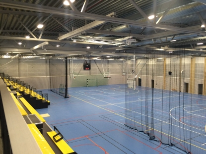 Inte i närheten av Sjöstadshallen, men ändå en hall utöver det vanliga. Golvet är riktigt, riktigt bra och belysningen är sjukt bra. Läktaren är visserligen inte alltid fullsatt, men ändå god beläggning. Bra känsla i hela hallen!